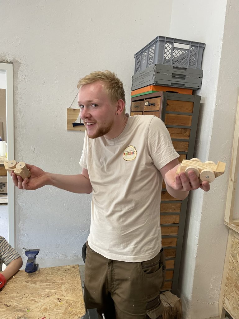 Enno und Eric fördern die Kreativität von Kindern durch handwerkliche Projekte.